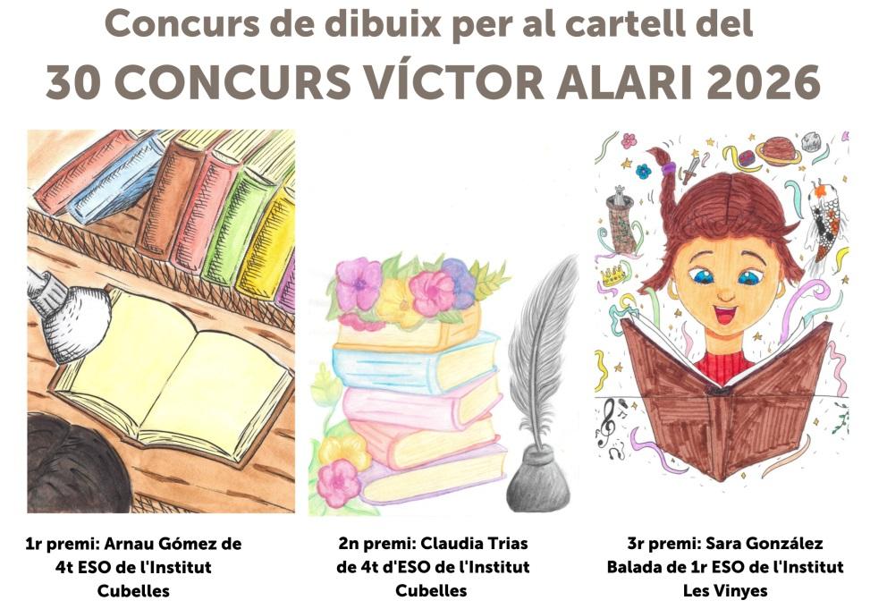 Aquest 2026, en el marc de la celebració del 30è Concurs de contes i Narració Breu Víctor Alari 2026 s'ha realitzat el XII Concurs per al cartell del certamen. El Concurs s’organitza des dels dos instituts de secundària: Institut Cubelles i Les Vinyes, amb la col·laboració de Ràdio Cubelles i del departament de Comunicació de l’Ajuntament.