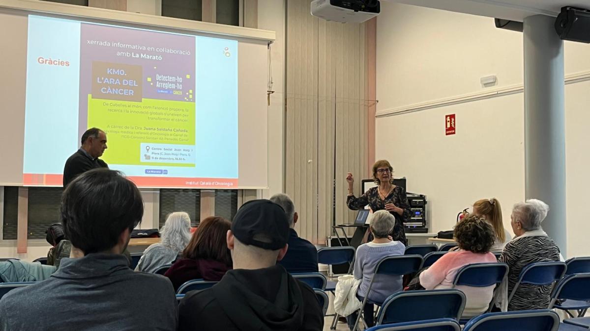 El Centre Social va acollir dijous 12 de desembre la xerrada “KM0. L’ara del càncer”, inclosa dins el programa de La Marató de 3cat, amb la finalitat d’explicar com l’atenció de proximitat i la recerca internacional s’uneixen en la lluita contra el càncer.